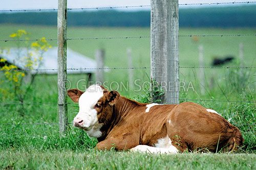 Keywords: Animal, Arame farpado, Cerca, Deitado, Descansando, Repouso, Fleckvieh, Simental, Bezerra, Gado Pecuaria, Bovino, Candido de Abreu, Parana |