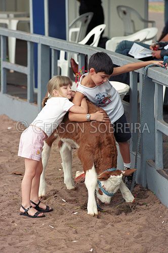 Keywords: Animal, Wood, Fence, Fondle, Roundup, Touch, Fun, Toy, Friendship, Affection, Emotion Feeling, Girl, Boy, People, Show, Event, Simmental, Heifer calf, Cattle Livestock, Bovine, Bauru, Sao Paulo |
