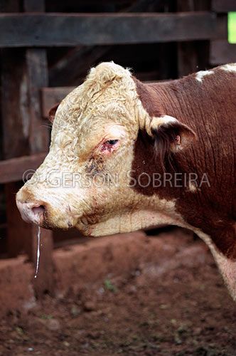 Keywords: Animal, Doente, Corrimento, Olho, Focinho, Cabeça, Corpo, Vertical, Inflamaçao, Doença, Manejo, Hereford, Touro, Macho, Gado Pecuaria, Bovino, Londrina, Parana |