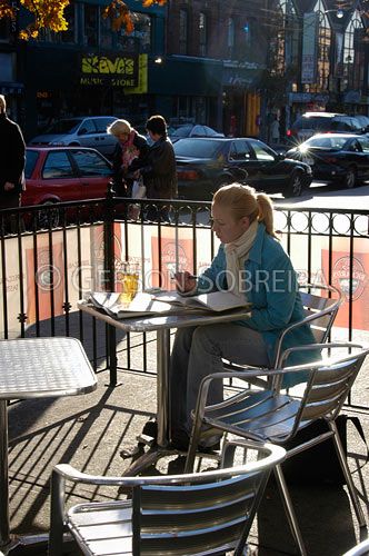 Keywords: Canada, Ontario, Toronto, Comercio, Venda, Bar, Restaurante, Urbano, The 360 Bar, Hungarian League, Gente, Alimento, Alimentaçao Nutriçao, Calçada, Mesa, Leitura, Livro, Bebida, Cerveja, Chopp, Mulher moça, Sozinho, Cadeira, Contra-luz Contra luz, Platano, 2004 |