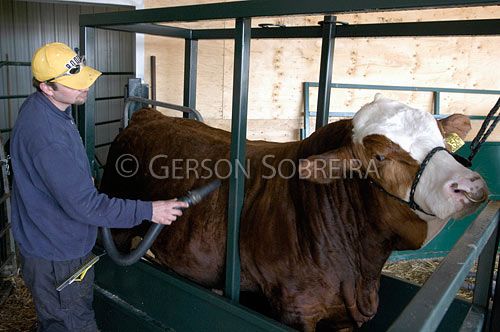 Keywords: Preparing, South African, Simmental, Dryer, Drying, Moveable squeeze chute, Squeeze chute, Bar 5 Farms, Canada, Ontario, Markdale, Animal, Cattle Livestock, Bovine, Bull, Landscape, Nature, Construction, Grille, People, Man, Adult, Job, Cowpoke Buckaroo Cowboy, Handler, Handling, Machine, Equipment, Shed, Stem, 2005 |