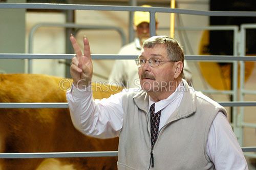 Keywords: Sul-africano Sul africano, Simental, Vaca, Gado Pecuaria, Bovino, Leilao, Comercio, Venda, Remate, Evento, Galpao, Instalaçao, Pisteiro leilao, Trabalho, Homem, Adulto, Gente, Animal, Bar 5 Farms, Horizontal, Fazenda, Rural, Markdale, Ontario, Canada, 2005 |