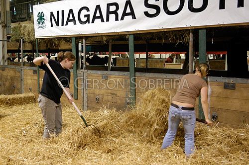 Keywords: Baia, Stand, Cama, Feno, Animal, Gado Pecuaria, Bovino, Tratador, Trabalho, Horizontal, Canada, Ontario, Toronto, Evento, Exposiçao, Royal Winter Fair 2005, Gente, Manejo, Preparo, Mulher, Moça, Jovem |