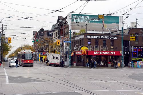 Keywords: Trilhos, Transporte, Fios, Sinal, Farol, Carro, Bonde, Spadina, Calçada, Predio, Edificio, Toronto, Ontario, Canada, Arquitetura, Urbano, Cidade, Avenida, Loja, 2005 |