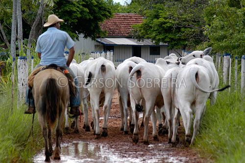 Keywords: Earth road, Road, Transport, Water, Farm, Rural, Landscape, Drive, Roundup, Handling, Standard, Nelore, Cow group, Cattle Livestock, Bovine, Animal, Guairaça, Parana, Horizontal, People, Man, Adult, Job, Cowpoke Buckaroo Cowboy, Horse, Body, Rear, Posterior, 2006 |