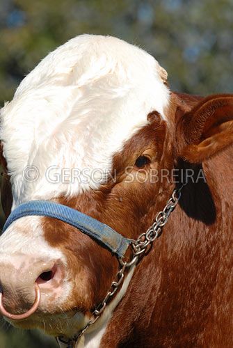Keywords: Vertical, Dois Corregos, Sao Paulo, Animal, Gado Pecuaria, Bovino, Touro, Macho, Simental, Detalhe, Cabeça, Argola, 2007 |