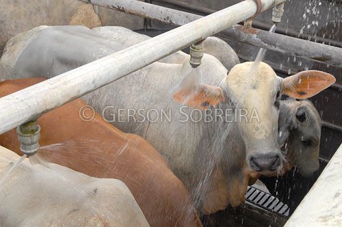 Keywords: Boi, Macho, Animal, Gado Pecuaria, Bovino, Igarape do Meio, Maranhao, Industria, Frigorifico, Pre-abate, Horizontal, Abate, Corredor, Chuveiro, Stress, Banho, Agua, Jato, 2007 |