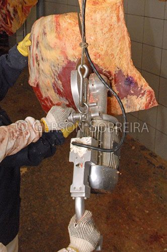 Keywords: Meat, Cut, Man, Adult, People, Slaughterhouse, Industry, Maranhao, Igarape do Meio, Cattle Livestock, Bovine, Animal, Carcass, Refrigerator room, Cold, Stock, Cooling, Hill, Vertical, 2007 |