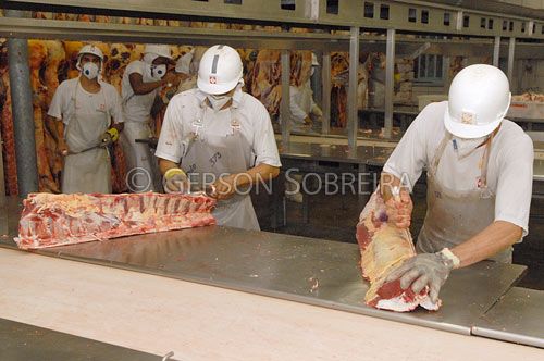 Keywords: Sala, Desossa, Carne, Corte, Homem, Adulto, Gente, Frigorifico, Industria, Maranhao, Igarape do Meio, Gado Pecuaria, Bovino, Animal, Contra-file Contra file, Horizontal, 2007 |