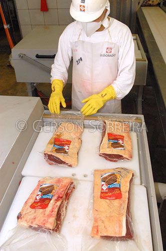 Keywords: Vacuity, Machine, Room, Meat, Man, Adult, People, Slaughterhouse, Industry, Maranhao, Igarape do Meio, Cattle Livestock, Bovine, Animal, Striploin, Package, Vertical, 2007 |