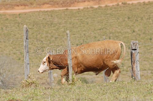 Keywords: Escapando, Fuga, Farpado, Arame, Cerca, Instalaçao rural, Animal, 2007, Horizontal, Gado Pecuaria, Bovino, Touro, Macho, Simental, Fleckvieh, Pasto Pastagem, Manejo, Pouso Alegre, Minas Gerais, Sul-africano Sul africano |