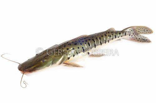 Keywords: Pseudoplatystoma corruscans, Spotted, Fish, Cambara, 2008, White background, White, Light, Fauna, Animal, Parana, Horizontal |