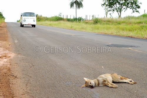 Keywords: Morto, Colisao, Morte, Atropelado, Acidente, Rodovia, Estrada, Transporte, Raposa, Nativo, Mamifero, Fauna, Animal, Horizontal, Sao Paulo, 2008, Avai, Carro, Lycalopex vetulus, Raposa-do-campo |