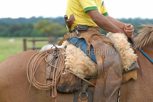 Keywords: Sela, Arreio, Tralha, Palha, Chapeu, Laço, Apetrecho, Objeto, Animal, Horizontal, Parana, Santa Fe, 2008, Equino, Cavalo, Gente, Homem, Adulto, Trabalho, Vaqueiro Peao Cowboy, Pelego |