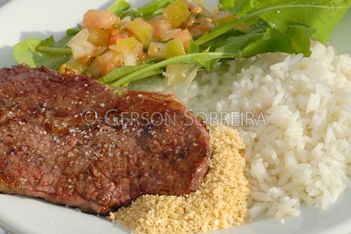 Keywords: Horizontal, Grelhado, Farinha, Mandioca, Prato, Arroz, 2008, Sao Paulo, Alimento, Alimentaçao Nutriçao, Comida, Carne, Bovino, Contra-file Contra file |