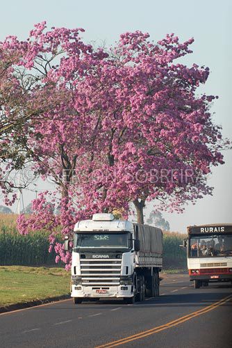 Keywords: Tabebuia avellanedae, Ipe, Roxo, Especie, Nativa, Arvore, Flora, Natureza, Onibus, Carreta, Caminhao, Asfalto, Rodovia, Estrada, Transporte, Vertical, 2008, Parana, Santa Mariana |