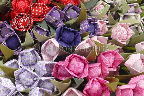 Keywords: Textura, Tecido, Artesanato, Cultura, Ornamento, Objeto, Londrina, 2008, Parana, Origami, Flor, Horizontal, Detalhe |