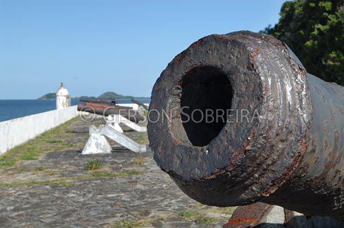 Keywords: Antigo, Patrimonio historico, Arquitetura, Forte, Fortaleza, Horizontal, Ilha do Mel, Parana, 2008, Litoral, Praia, Agua, Mar, Canhao, Detalhe |