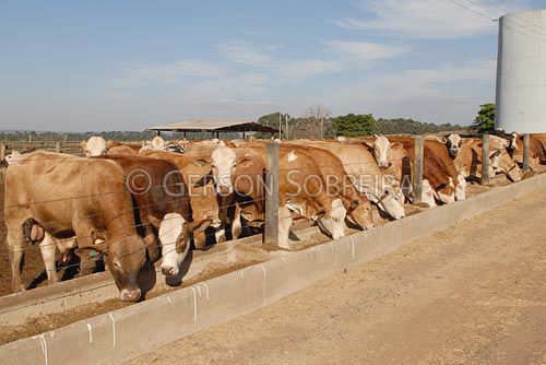 Keywords: Comendo, Castrado, Macho, Cruzado, Cruzados, Boi, Confinamento, Cocho, Instalaçao rural, Cruzamento, Simbrasil, Boiada, Gado Pecuaria, Bovino, Animal, Botucatu, 2008, Sao Paulo, Horizontal |