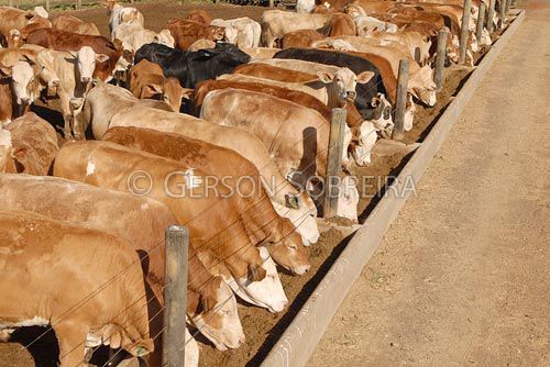 Keywords: Comendo, Castrado, Macho, Cruzado, Cruzados, Boi, Confinamento, Cocho, Instalaçao rural, Cruzamento, Simbrasil, Boiada, Gado Pecuaria, Bovino, Animal, Botucatu, 2008, Sao Paulo, Horizontal |