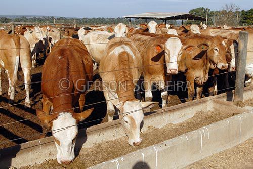 Keywords: Eating, Castrated, Male, Crossed, Crossed, Ox, Feedlot, Feeder, Rural installation, Crossbreeding, Simbrah, Oxen, Cattle Livestock, Bovine, Animal, Botucatu, 2008, Sao Paulo, Horizontal |