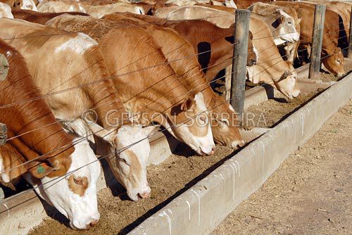 Keywords: Comendo, Castrado, Macho, Cruzado, Cruzados, Boi, Confinamento, Cocho, Instalaçao rural, Cruzamento, Simbrasil, Boiada, Gado Pecuaria, Bovino, Animal, Botucatu, 2008, Sao Paulo, Horizontal |