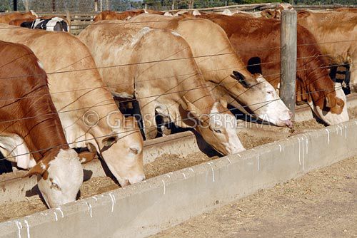 Keywords: Comendo, Castrado, Macho, Cruzado, Cruzados, Boi, Confinamento, Cocho, Instalaçao rural, Cruzamento, Simbrasil, Boiada, Gado Pecuaria, Bovino, Animal, Botucatu, 2008, Sao Paulo, Horizontal |