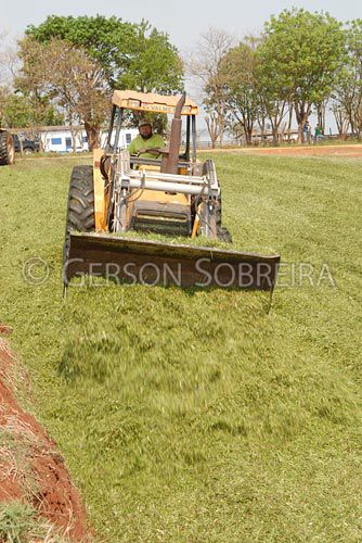 Keywords: Vertical, Unload, Unloading, Avena sativa, Fodder, Oat, Cereal, Silage, Ensilage, Agriculture, Tractor, Equipment, Trench silo, Silo, Rural installation, Compactation, Palmeira das Missoes, 2008, Handling, Filling up, Spade, Loader |