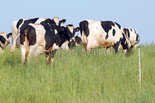 Keywords: Holstein Friesian, Holstein, Dutch, Grass, Grass, Lolium multiflorum, Grass, Ryegrass, Feeding, Handling, Dairy, Milkman, Cow, Cattle Livestock, Bovine, Animal, 2008, Palmeira das Missoes, Horizontal, Agriculture, Fence, Eletric, Cow group |