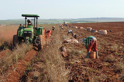 Keywords: Arrancador, Equipamento, Horizontal, 2008, Parana, Florestopolis, Agricultura Agricola, Manejo, Colheita, Tuberculo, Batata, Solanum tuberosum, Gente, Homem, Adulto, Trabalho, Trabalhador rural, Terra, Chao, Solo, Roxa, Poeira |