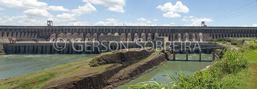 Keywords: Agua, Luz, Energia, Eletricidade, Barragem, Itaipu, Usina, Hidreletrica, Industria, Arquitetura, Horizontal, Rio Parana, Foz do Iguaçu, Parana, 2009, Panoramica |