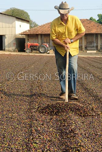 Keywords: Vertical, Revolver, Revolving, House, Yard, Rural installation, Drying, Handling, Rake, Tool Instrument, Equipment, Agriculturalist, Rural worker, Job, Man, Adult, People, Sao Paulo, Santo Antonio do Jardim, Coffea arabica, Coffee, Agriculture, 2009, Rural, Farm |