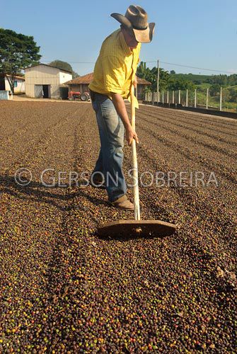Keywords: Vertical, Revolver, Revolving, House, Yard, Rural installation, Drying, Handling, Rake, Tool Instrument, Equipment, Agriculturalist, Rural worker, Job, Man, Adult, People, Sao Paulo, Santo Antonio do Jardim, Coffea arabica, Coffee, Agriculture, 2009, Rural, Farm |