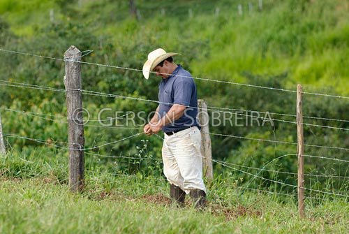 Keywords: Conserto, Consertando, Farpado, Arame, Cerca, Instalaçao rural, Vaqueiro Peao Cowboy, Trabalho, Homem, Adulto, Gente, Turvolandia, Horizontal, 2009, Minas Gerais |
