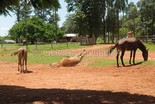 Keywords: 2010, Mato Grosso do Sul, Jatei, Animal, Lay down, Resting, Horizontal, Rest, Troop, Scratching, Itch, Asinus, Mule |