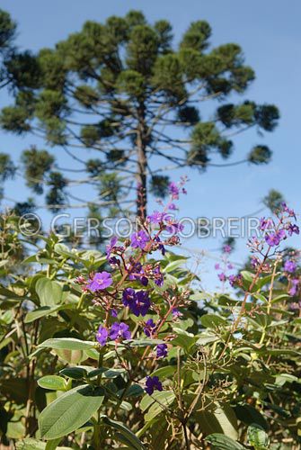 Keywords: Parque Estadual do Guartela, Campo, Campos Gerais, Bioma, Reserva, Meio ambiente, Tibagi, 2010, Parana, Natureza, Flora, Arvore, Especie, Vertical, Flor, Orelha-de-onça, Tibouchina grandifolia, Pinheiro-do-Parana Pinheiro do Parana, Araucaria angustifolia |