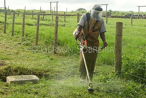 Keywords: Prune, Pruning, Cutting, Cut, Grass, Cattle Livestock, Bovine, Horizontal, 2010, Minas Gerais, Uberlandia, People, Man, Adult, Job, Rural worker, Equipment, Tool Instrument, Line trimmer, Costal, Cleared land |
