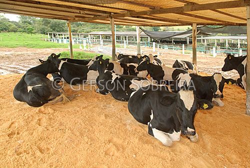 Keywords: 2010, Carmo do Paranaiba, Minas Gerais, Animal, Cattle Livestock, Bovine, Cow, Dairy, Milkman, Holstein Friesian, Holstein, Dutch, Rural installation, Horizontal, Shadow, Handling, Comfort Well-being, Resting, Rest, Lay down |