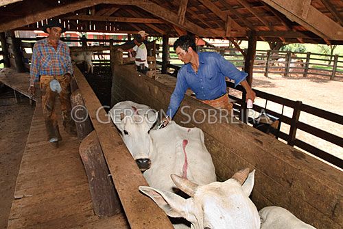 Keywords: Cattle Livestock, Bovine, Nelore, Animal, Horizontal, Doser, Pistol, Syringe, Vaccine, Vaccination, Handling, Corral, Santa Fe, Parana, 2011, People, Job, Cowpoke Buckaroo Cowboy, Man, Adult, Foot-and-mouth Foot and mouth, Vaccinating |