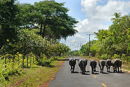 Keywords: Rodovia, Asfalto, Homem, Adulto, Bufalo, Bubalus bubalis, Bubalino, Animal, Ilha de Marajo, 2011, Para, Horizontal, Soure, Estrada, Murrah |