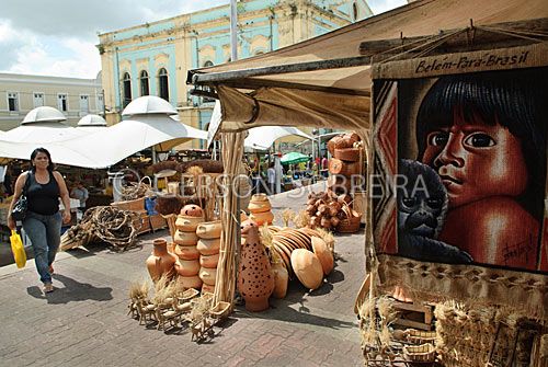 Keywords: Ver-o-Peso market, Horizontal, 2011, Belem, Para, Trade, Shop, Fair, Culture, Craftwork, Basketry, Hand basket, Shelter tent, Object, Ornament, Adornment, Pottery, Mud, Indian, Indigene, Painting |