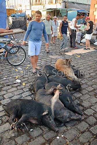 Keywords: Amarrado, Preso, Rua, Porca, Cachaço, Suino Suinos Suinocultura, Porco, Animal, Vertical, Comercio, Venda, Para, Belem, 2011, Mercado Ver-o-Peso, Gente, Homem, Adulto |