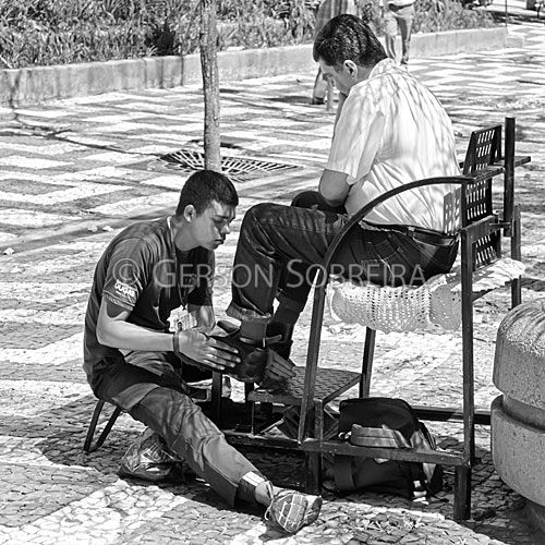 Keywords: Engraxate, Homem, Rapaz, Jovem, Adulto, Quadrado, Rua, Gente, Cidade, Urbano, 2011, Londrina, Parana, Sentado, Preto e Branco |