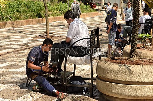 Keywords: Horizontal, Trabalho, Sentado, Parana, Londrina, 2011, Cidade, Urbano, Gente, Rua, Homem, Adulto, Rapaz, Jovem, Engraxate |