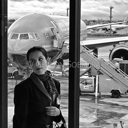 Keywords: Flight attendant, Woman, Adult, People, Square, Black and white, Stewardess, 2012, Sao Paulo, Guarulhos, Transport, Aerial, Airport, Airplane, Aircraft, Cumbica |