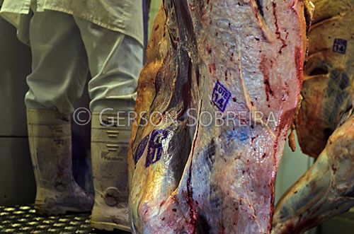 Keywords: Frigorifico, Braford, Imunocastrado, Castrado, Macho, Gordo, Boi, Animal, Jataizinho, 2012, Parana, Industria, Abate, Corte, Carne, Carcaça, Gado Pecuaria, Bovino, Horizontal, Carimbo, Inspeçao |