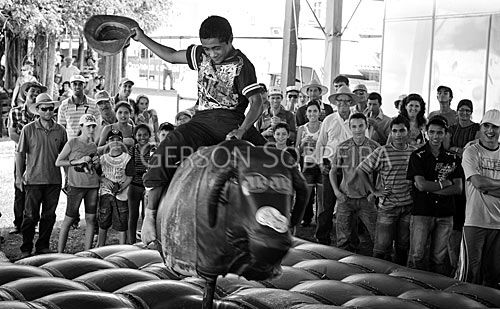 Keywords: Preto e Branco, Brinquedo, Diversao, Touro mecanico, Menino Criança, Gente, Exposiçao, Evento, Cascavel, 2012, Parana, Horizontal |
