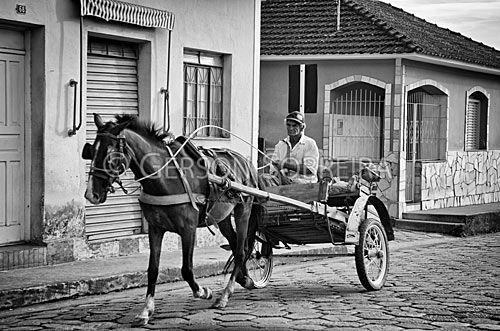 Keywords: Black and white, Silvianopolis, Minas Gerais, 2012, Horizontal, Urban, Street, Coach, Transport, Horse, Man |