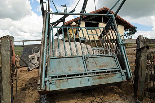 Keywords: Brahman, Gado Pecuaria, Bovino, Animal, Minas Gerais, 2012, Horizontal, Careaçu, Novilha, Casqueamento, Casco, Gente, Homem, Adulto, Casqueador, Equipamento, Brete, Movel |