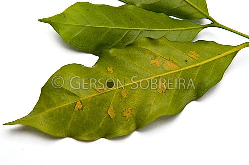 Keywords: Fundo branco, Hemileia coffeicolla, Ferrugem, Fungo, Doença, Coffea arabica, Cafe, Agricultura Agricola, 2012, Parana, Londrina, Horizontal, Folha |